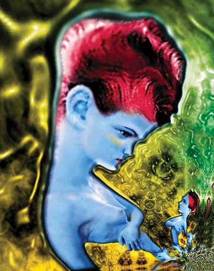 Franck Demoncheaux était un peintre autodidacte avant de découvrir l’écran d’un Macintosh au début des années 90. Depuis les deux domaines sont singulièrement mêlés, la machine étant au service de la pensée créatrice et non le contraire. Il s’intéresse aux structures, à l’anatomie du vivant, à la génétique. Ses œuvres oscillent entre recherche prospective et contemplation pure, avec, parfois, un zeste d’humour. Il sait faire surgir l’insolite et pare ses personnages de couleurs aussi fascinantes qu’irréelles.