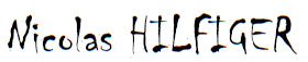 Nicolas Hilfiger fez sua formação artística na Bélgica. Desde então, seu trabalho consiste em uma coleta, isto é, na reunião de coisas esparsas, tais como lembranças, colagens que marcam e ressurgem em obra recente, em uma recoleção implosiva. Ele se dedica essencialmente à pintura a óleo, magmática, como se procurasse na penumbra uma saída luminosa. Paralelamente, seus desenhos são, ao mesmo tempo, estudos para as pinturas e o que ele intitula “a crispação ontológica”.
