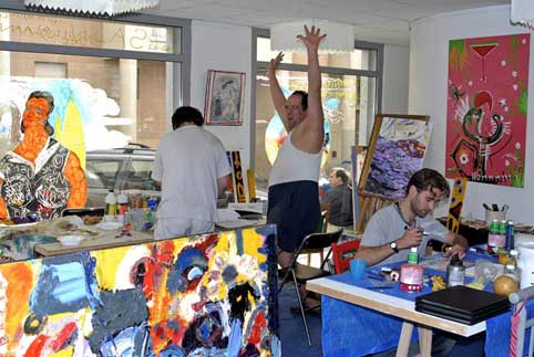Le GEM a aussi un réseau d’ «artistes-partenaires», professionnels non concernés directement par des problèmes de santé mentale, qui travaillent avec les artistes, tissent des liens de compagnonnage et participent aux différentes activités.