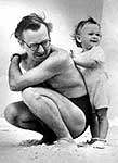 com a família no Uruguai. Neste período, pinta o painel